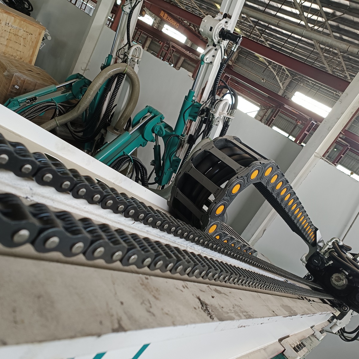 Łańcuch służy do podnoszenia, regulacji kąta obrotu i ruchu teleskopowego wiertnic wielowysięgowych.