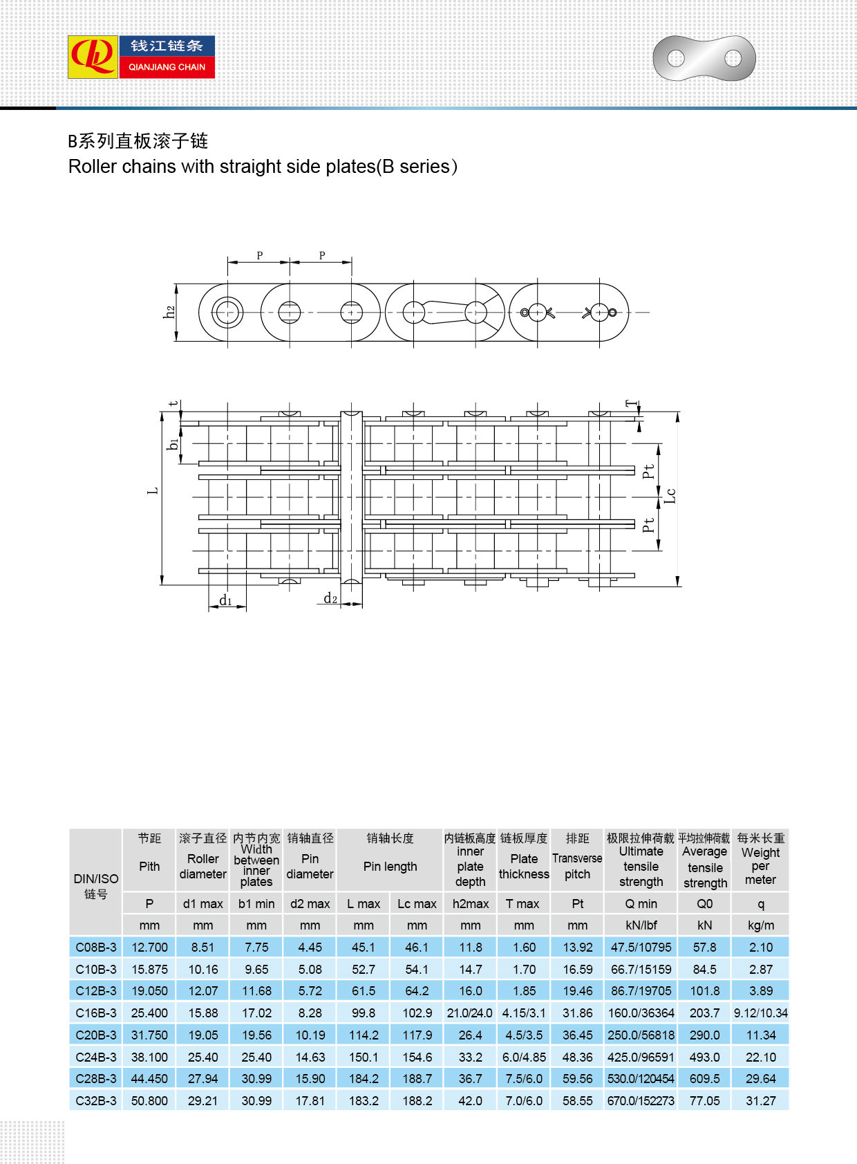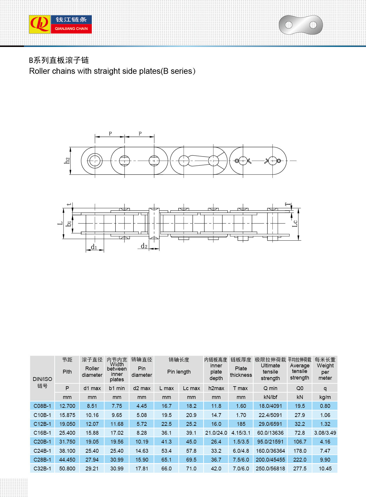 Łańcuchy rolkowe z prostą płytą boczną (seria B)