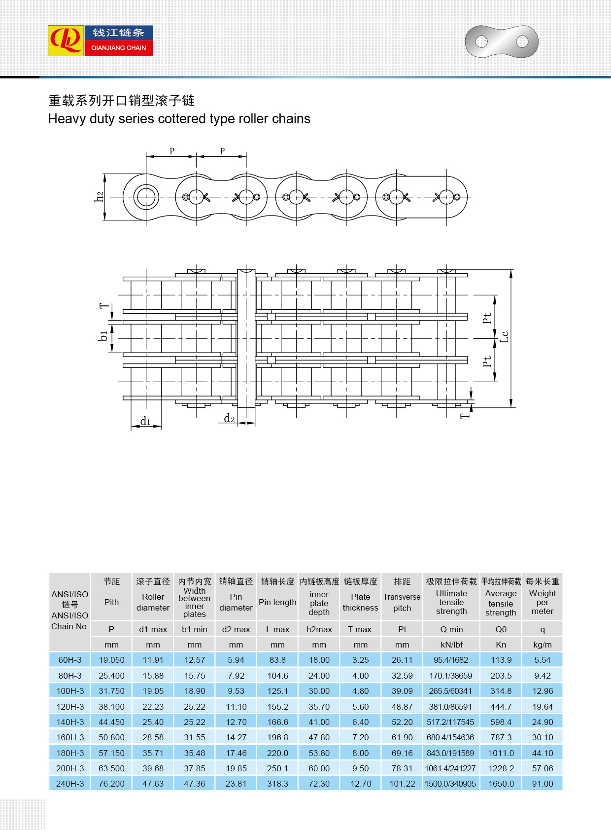 Łańcuchy rolkowe z zawleczkami serii Heavy Duty zostały zaprojektowane z myślą o wymagających zastosowaniach, w których niezawodność i trwałość są niezbędne. Zaprojektowane z systemem zawleczek, łańcuchy te oferują wytrzymałość i wydajność w porównaniu z tradycyjnymi łańcuchami rolkowymi, co czyni je idealnymi do ciężkich maszyn, przenośników i sprzętu przemysłowego. Typ z zawleczką zapewnia bezpieczne zamocowanie każdego sworznia, zmniejszając ryzyko poluzowania i zapewniając spójne działanie w czasie.