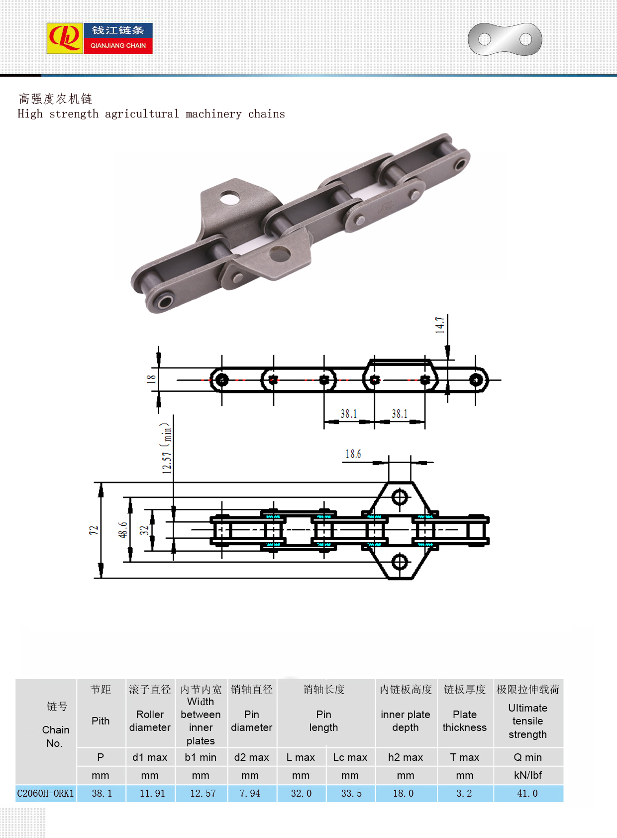 Łańcuchy do maszyn rolniczych o wysokiej wytrzymałości charakteryzują się odpornością na zużycie, wytrzymałością i żywotnością oraz nadają się do różnych złożonych warunków pracy. Stosowane są wysokiej jakości materiały ze stali stopowej, a wytrzymałość na rozciąganie i trwałość zmęczeniowa łańcucha są zwiększone dzięki procesom obróbki cieplnej (takim jak nawęglanie, odpuszczanie i hartowanie). Powierzchnia stykowa łańcucha jest specjalnie utwardzana, ma gładką powierzchnię i dobrą odporność na zużycie, nadaje się do pracy z dużą częstotliwością. Precyzyjna technologia przetwarzania zapewnia ścisłe dopasowanie ogniw łańcucha, płynną pracę oraz redukcję hałasu i wibracji. Różnorodne podziałki, wytrzymałości i formy (takie jak łańcuchy rolkowe, łańcuchy pomocnicze, łańcuchy z giętymi płytkami itp.) można dostosować do potrzeb różnych maszyn i sprzętu rolniczego. Stosowany w mechanizmie przekładniowym transportu, cięcia i omłotu pszenicy, ryżu, kombajnów kukurydzianych itp. Napęd tarczy wysiewającej i wału nawozu wymaga dokładnej i trwałej pracy łańcucha. Stosowany w rolniczych przenośnikach taśmowych, windach materiałowych itp. w celu wykonywania zadań transportowych o wysokiej częstotliwości.