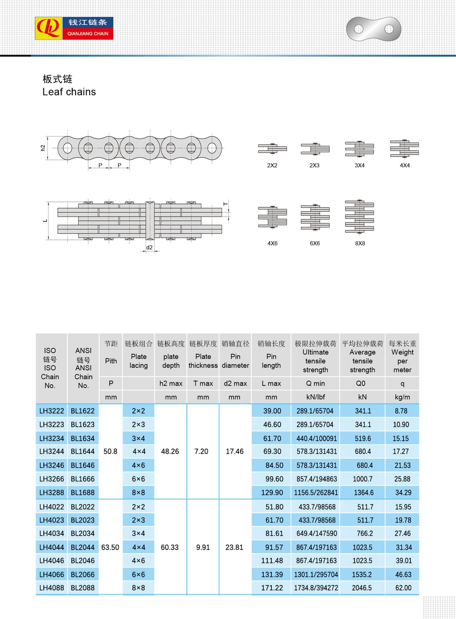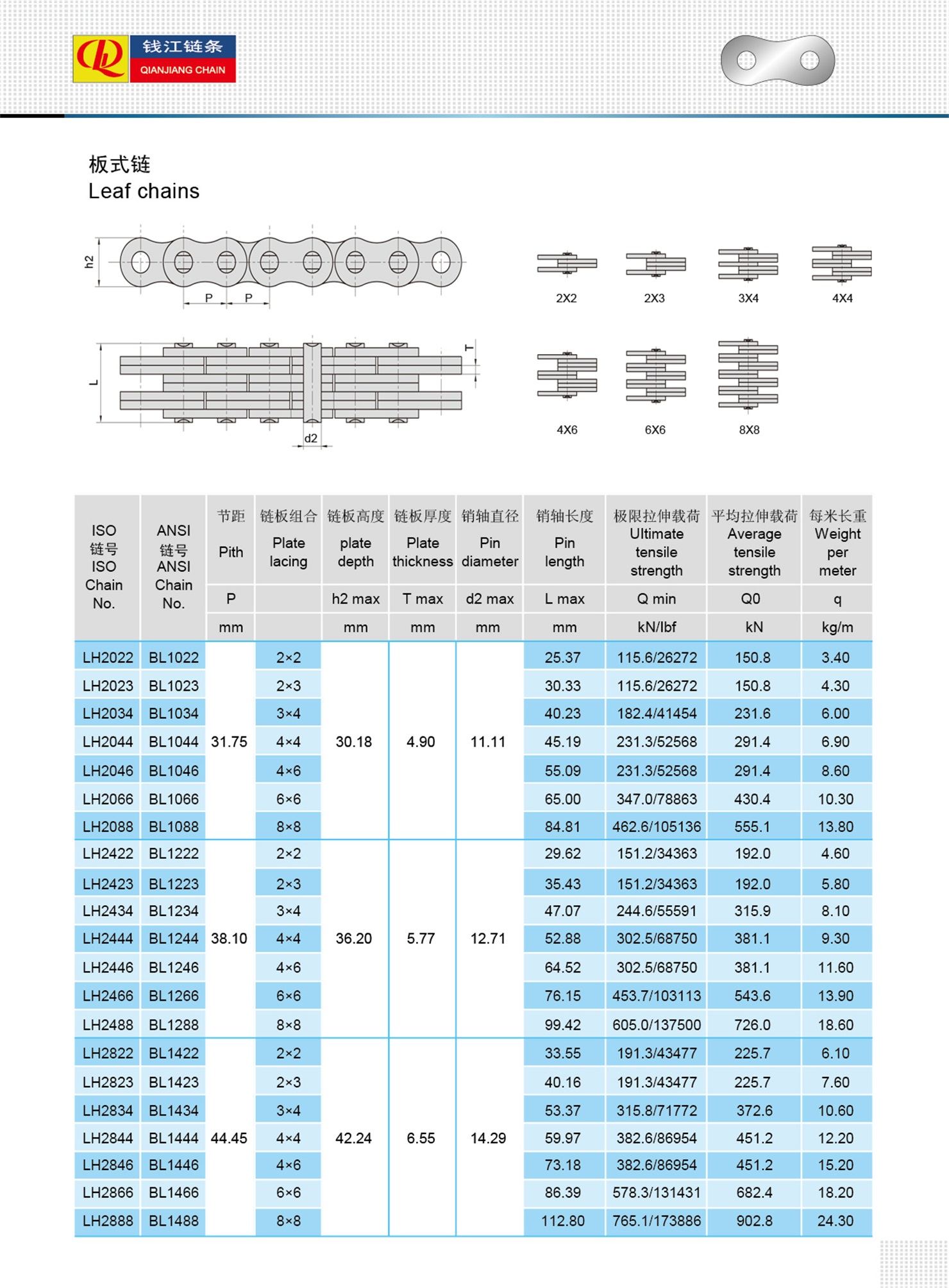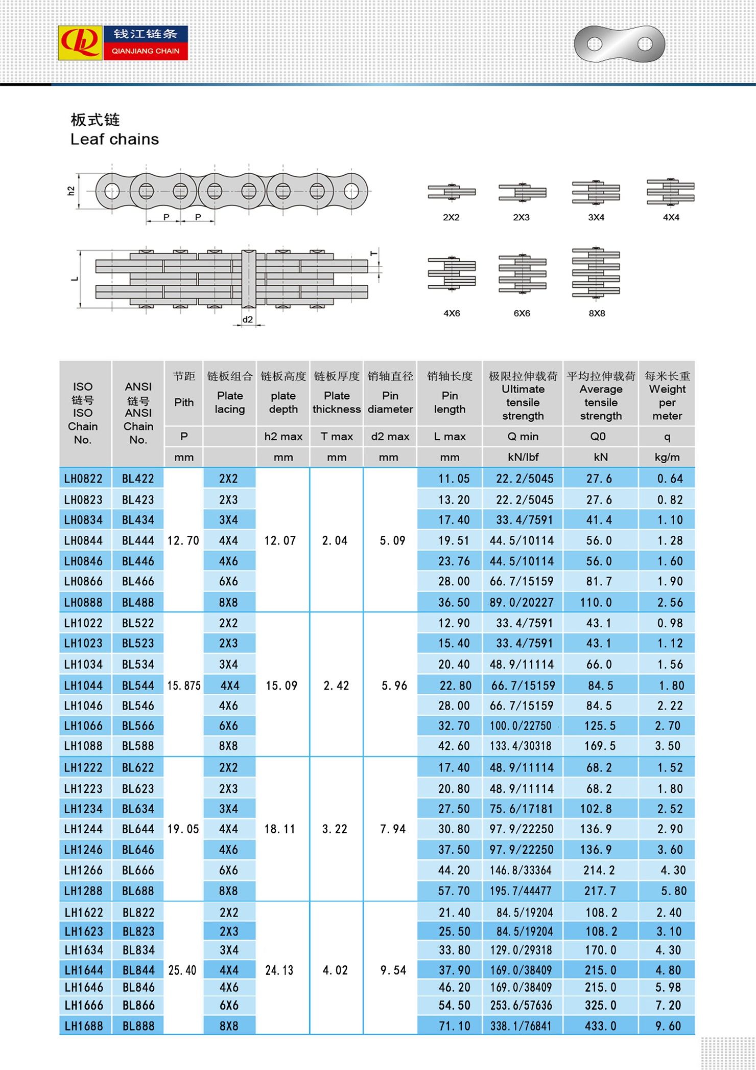 Odporne na zużycie, trwałe łańcuchy liściowe LH (seria BL).
