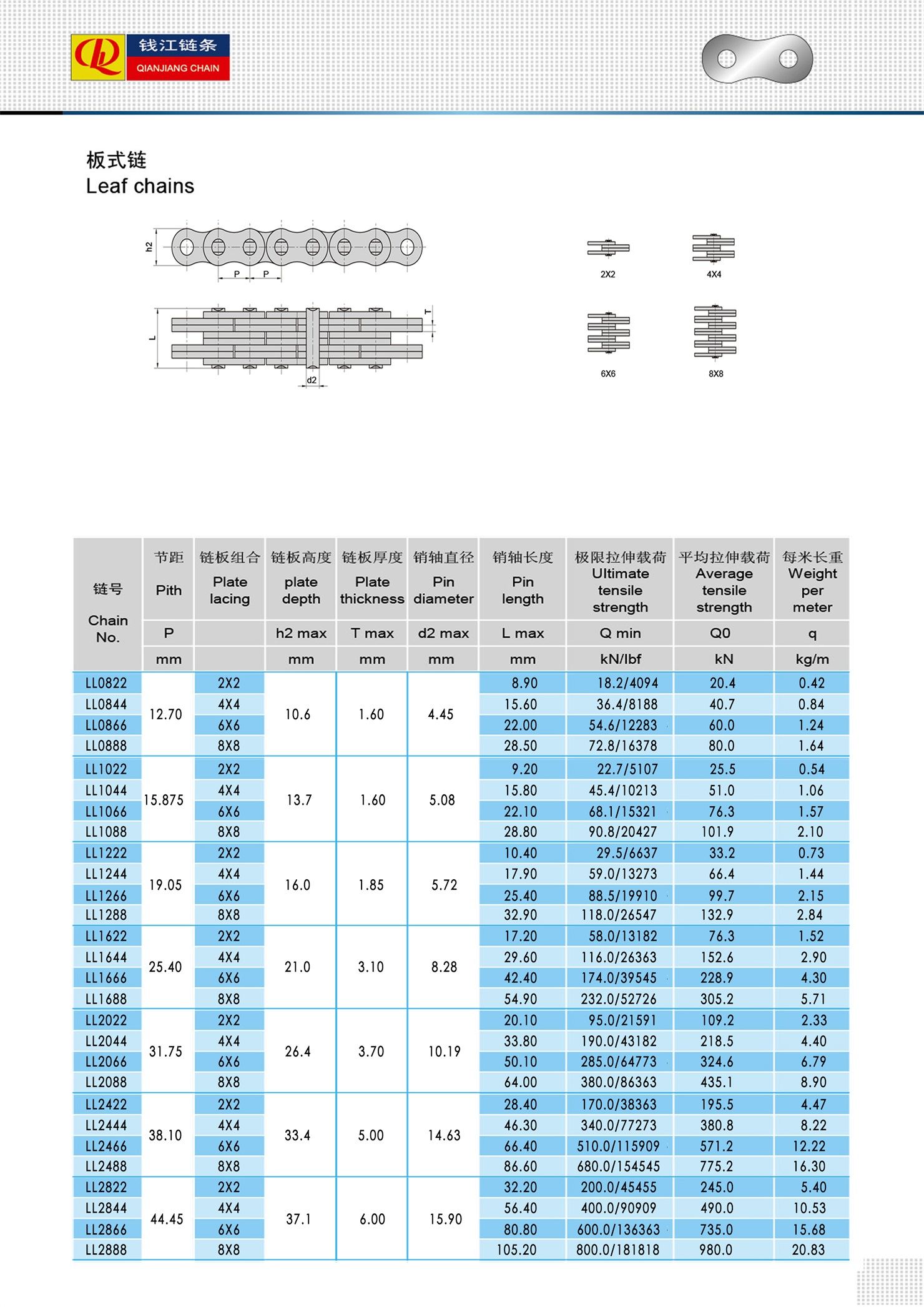 (Seria LL) Łańcuchy piórowe o wysokiej stabilności i wymagające niewielkiej konserwacji – zaprojektowane tak, aby zapewniać wyjątkową wydajność przy minimalnej konserwacji. Zaprojektowane z myślą o trwałości i niezawodności, te łańcuchy piórowe są wykonane z najwyższej jakości materiałów, które są odporne na zużycie i zmęczenie, zapewniając długą żywotność nawet w wymagających warunkach. Ich solidna konstrukcja zapewnia wysoką wytrzymałość na rozciąganie i stabilność, dzięki czemu idealnie nadają się do zastosowań wymagających dużych obciążeń, takich jak wózki widłowe, urządzenia dźwigowe i maszyny przemysłowe.